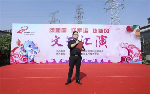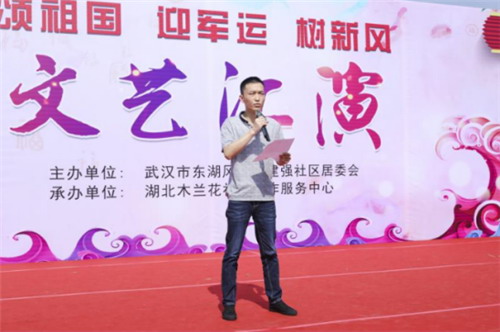 為慶祝建國70周年,歌頌祖國,也為了讓建強(qiáng)社區(qū)居民有個(gè)潔凈的生活環(huán)境,迎接軍運(yùn),增強(qiáng)居民迎軍運(yùn)的濃厚氛圍,讓有時(shí)間、有空閑、有熱情的社區(qū)志愿團(tuán)隊(duì)一起參與到小區(qū)環(huán)境建設(shè)中來,小區(qū)環(huán)境為人人,人人愛護(hù)小區(qū)的環(huán)境。建強(qiáng)社區(qū)聯(lián)合湖北木蘭花社會(huì)工作服務(wù)中心在2019年5月10日上午組織開展了一場(chǎng)“頌祖國 迎軍運(yùn) 樹新風(fēng)”的文藝匯演活動(dòng)。